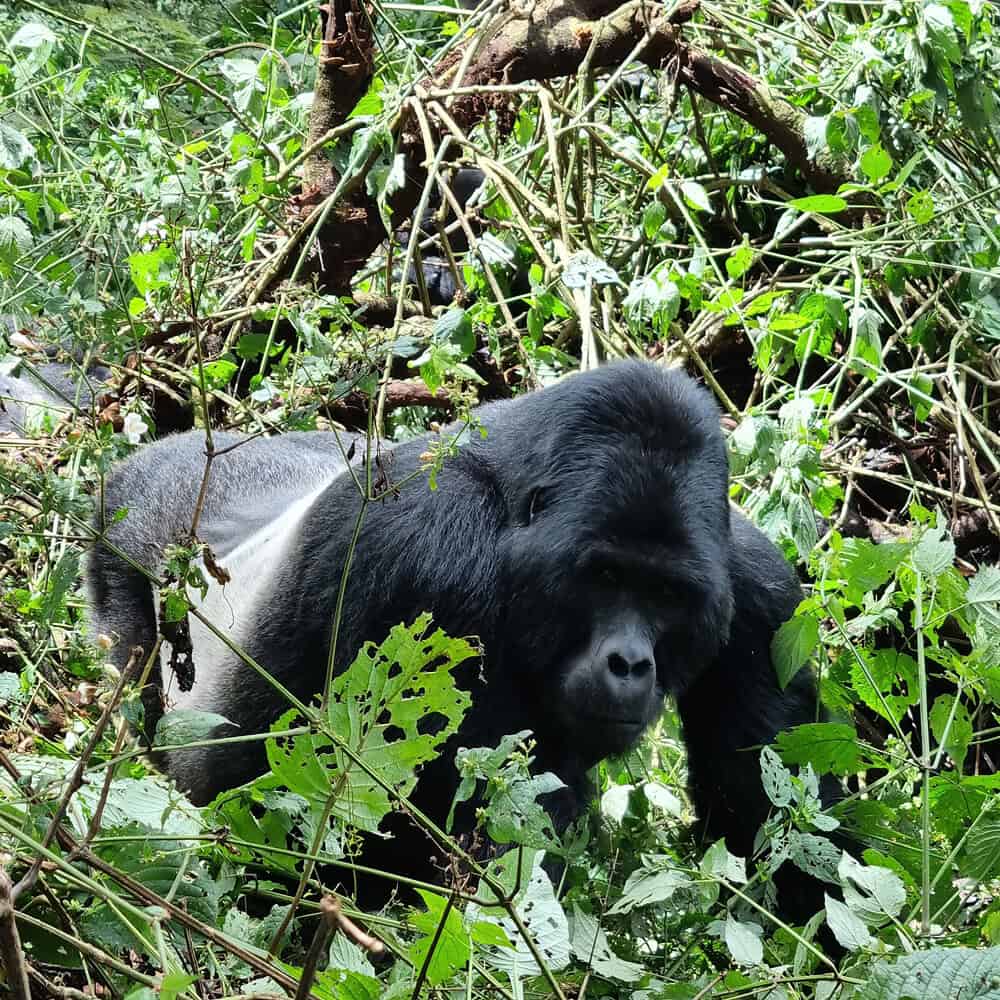 Quand une famille de gorilles est repérée par les pisteurs, on s’approche calmement et sans faire de bruits intempestifs. Les gorilles ne sont pas des animaux agressifs, ils sont paisibles et craintifs. C’est un moment émouvant, une rencontre dont on garde un souvenir inoubliable, en se trouvant à quelques mètres de ces cousins éloignés dont bien des attitudes sont proches des nôtres.