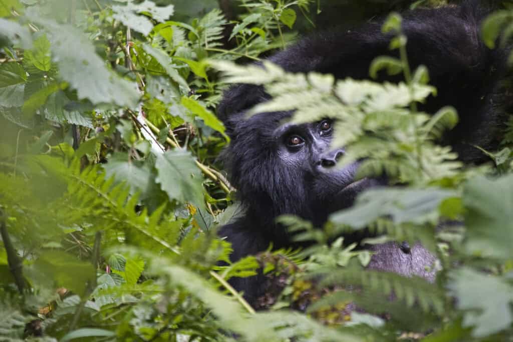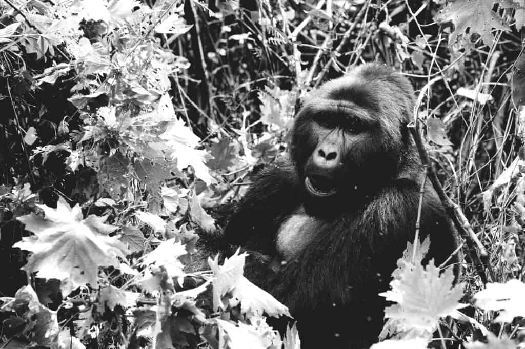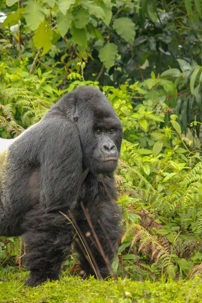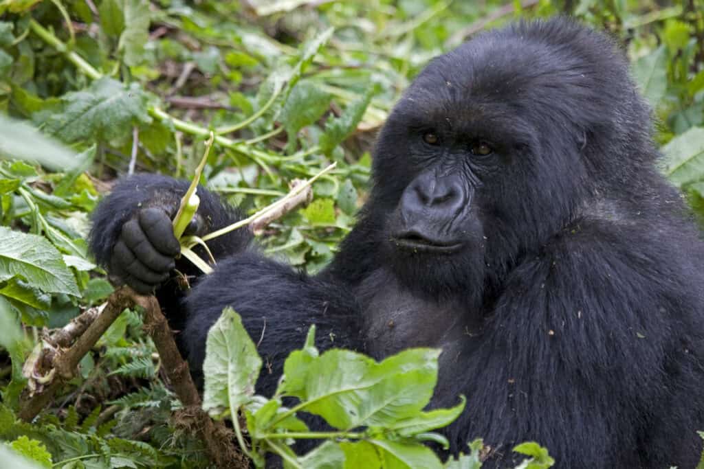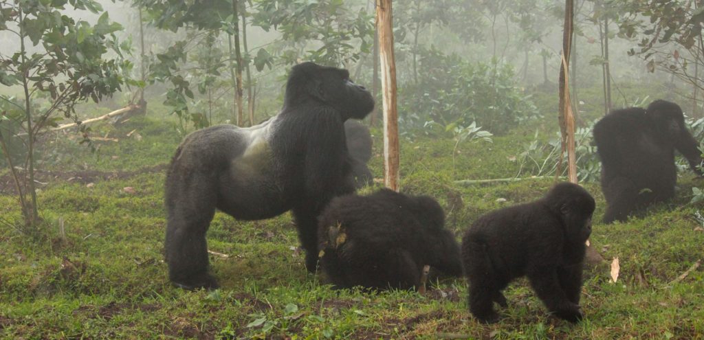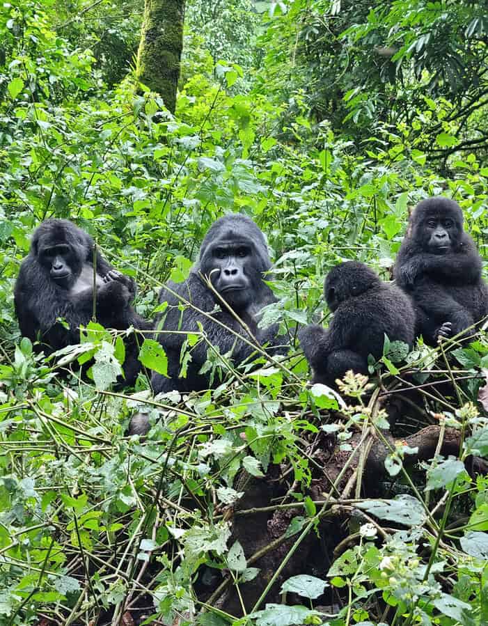 Quand une famille de gorilles est repérée par les pisteurs, on s’approche calmement et sans faire de bruits intempestifs. Les gorilles ne sont pas des animaux agressifs, ils sont paisibles et craintifs. C’est un moment émouvant, une rencontre dont on garde un souvenir inoubliable, en se trouvant à quelques mètres de ces cousins éloignés dont bien des attitudes sont proches des nôtres.