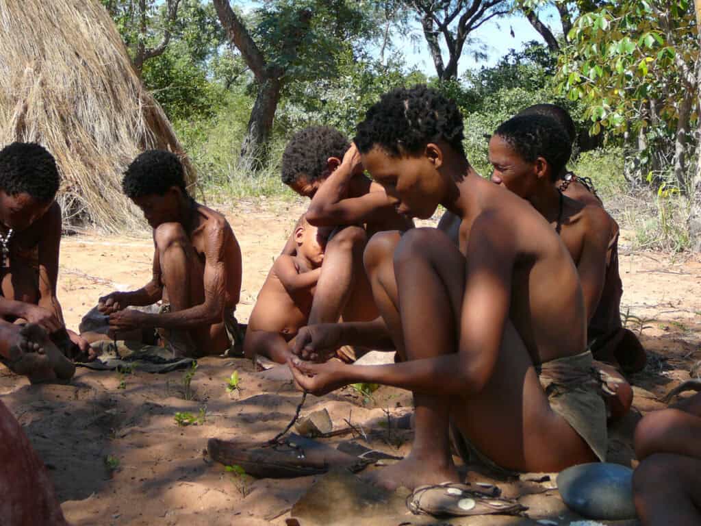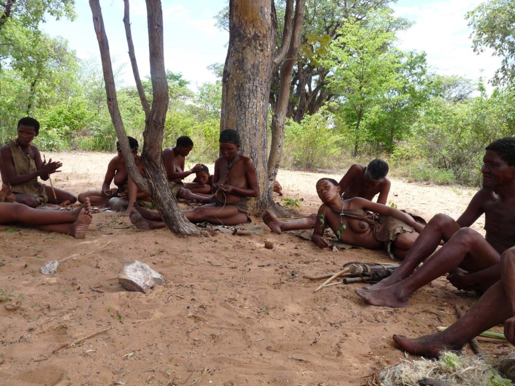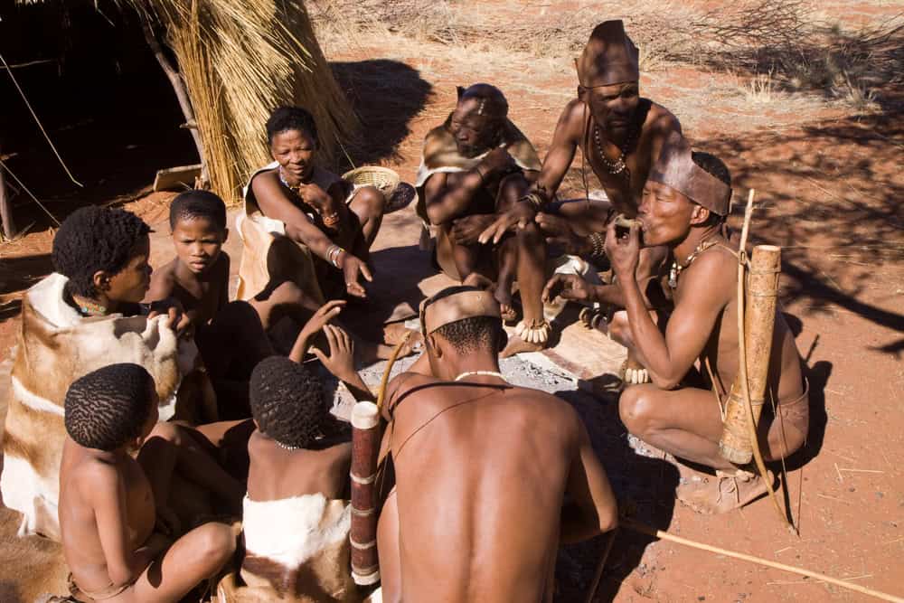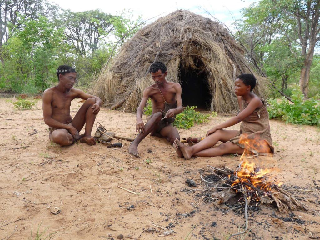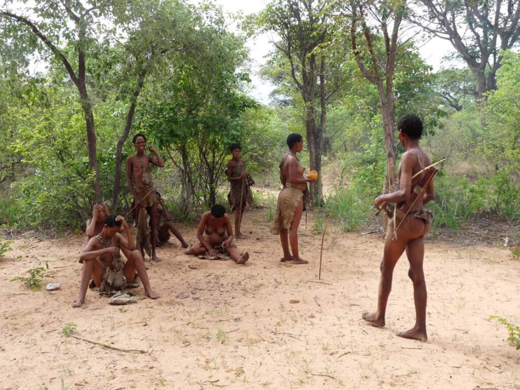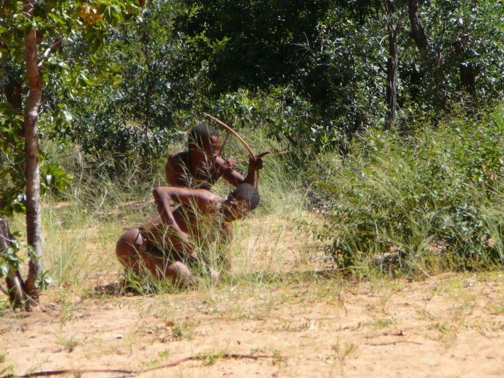Les Bushmen sont les membres du peuple san, ce peuple désormais célèbre et rendu populaire grâce au film « Les Dieux sont tombés sur la tête ». Ces chasseurs-cueilleurs étaient les premiers résidents de l’Afrique australe. Petits de stature et clairs de couleur de peau, utilisant un langage à clics, les Bushmen ont été longtemps persécutés par les peuples bantous qui ont pris le pouvoir sur l’Afrique australe, se réfugiant sur les terres arides du Kalahari où ils étaient les seuls à pouvoir survivre.
