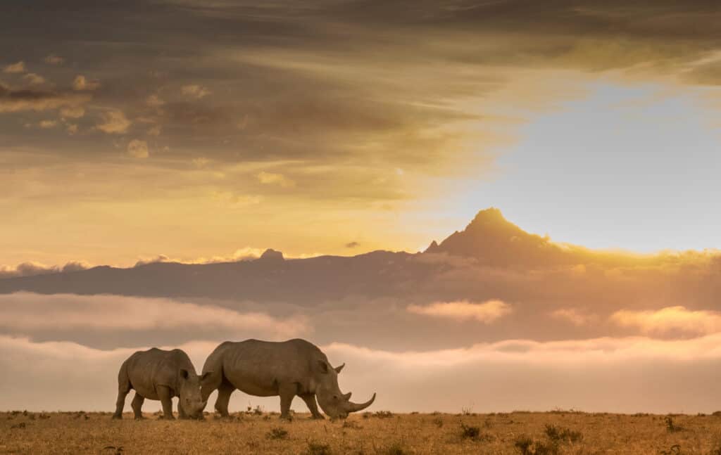 Ol Pejeta Conservancy, est une réserve privée de 36 000 hectares, située à une cinquantaine de kilomètres, au Nord-Ouest du mont Kenya. On y trouve les « big five », mais la réserve met un point d’honneur à développer des programmes particuliers de préservation de la faune. Comme pour le rhinocéros blanc du Nord dont elle possède les deux derniers spécimens (2 femelles) au monde vivant à l’état sauvage. Le dernier mâle, Sudan, est mort en Mars 2018. Leurs rhinocéros noirs ont connu une meilleure destinée. Leur nombre dépasse la centaine aujourd’hui.