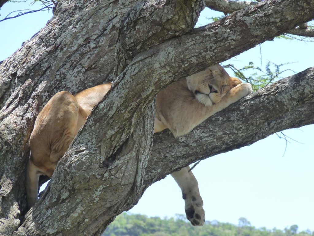 Les félins sont également présents, à l’exception du guépard. Les lions ne sont pas toujours faciles à voir en raison de l’épaisseur de la forêt. C’est la raison pour laquelle, et c’est une des particularités de ce parc, ils se perchent dans de grands acacias pour mieux repérer leurs proies.