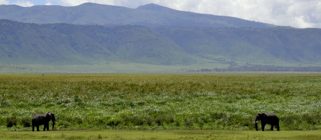 C’est une caldera d’une superficie de 260 Km carrés qui n’est en fait qu’une toute petite partie de cette gigantesque réserve mesurant 8.300 Km carrés auxquels s’ajoutent Serengeti, Maswa, Grumeti et Masaï Mara totalisant ainsi plus de 25.000 Km carrés à l’intérieur desquels les animaux migrent continuellement.