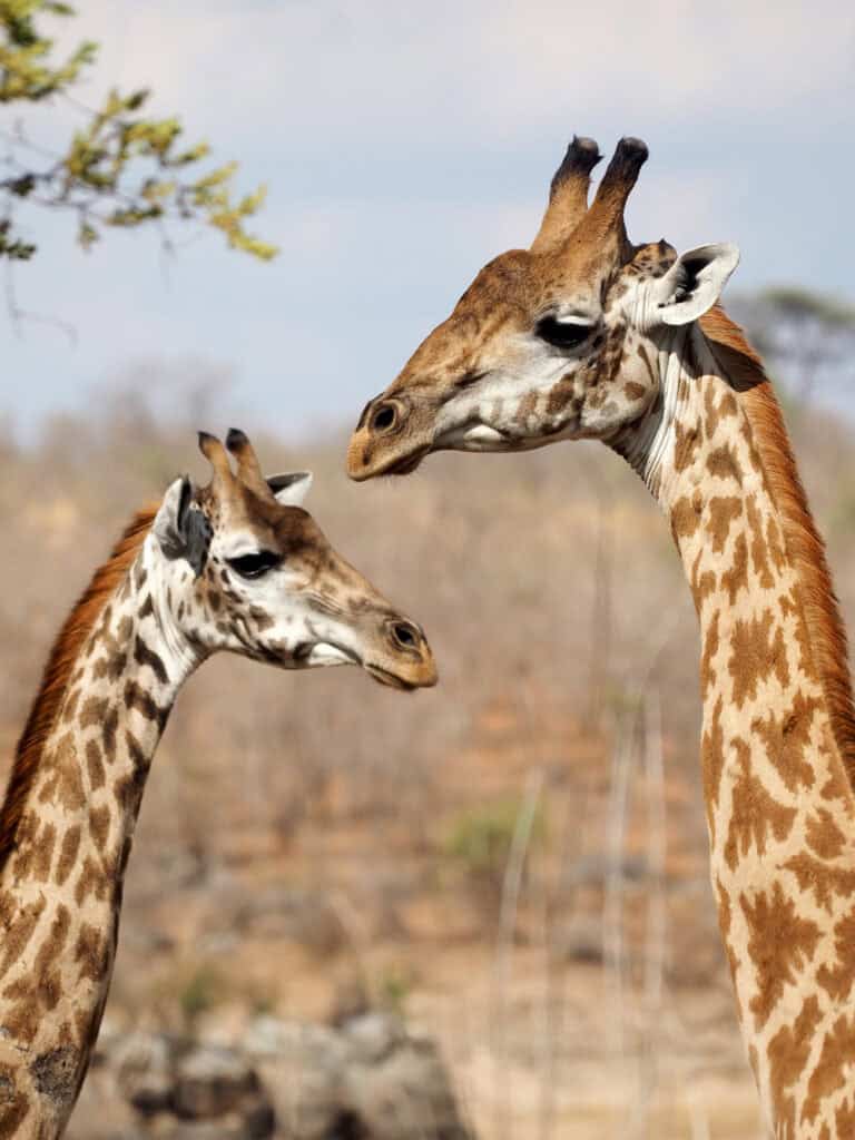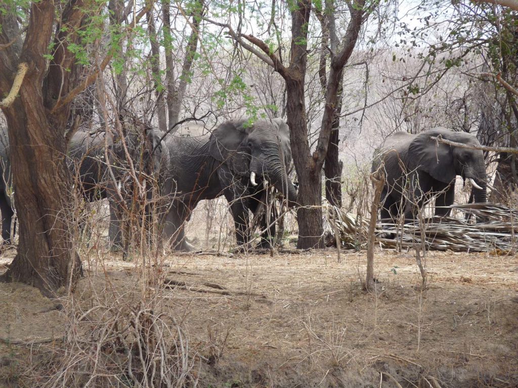 A quelques mètres à peine, des girafes mâchent patiemment des feuilles d’acacias en nous regardant de leurs grands yeux ourlés de longs cils. A quelques distances un troupeau d’éléphants passe, majestueux, en direction de la rivière.