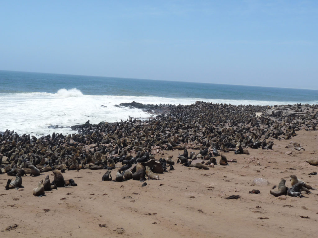 Aujourd’hui, Cape Cross abrite la plus importante des 15 colonies d’otaries à fourrure de Namibie (en Décembre, au moment de la reproduction, elle peut compter quelques 100 000 membres !). Les rochers et l’océan sont alors noirs d’otaries, vautrées le long de la côte, offrant une ambiance exclusive où le brouhaha des cris sourds et une odeur marquée, recouvrent le charme de l’air marin.